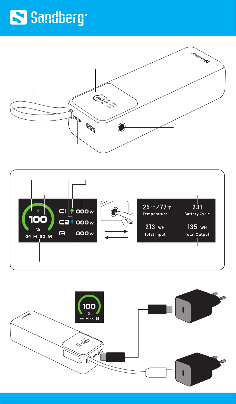 Output (USB-C cable / USB-C port): 5V/3A, 9V/3A, 12V/3A, 15V/3A, 20V/5A (100W Max)