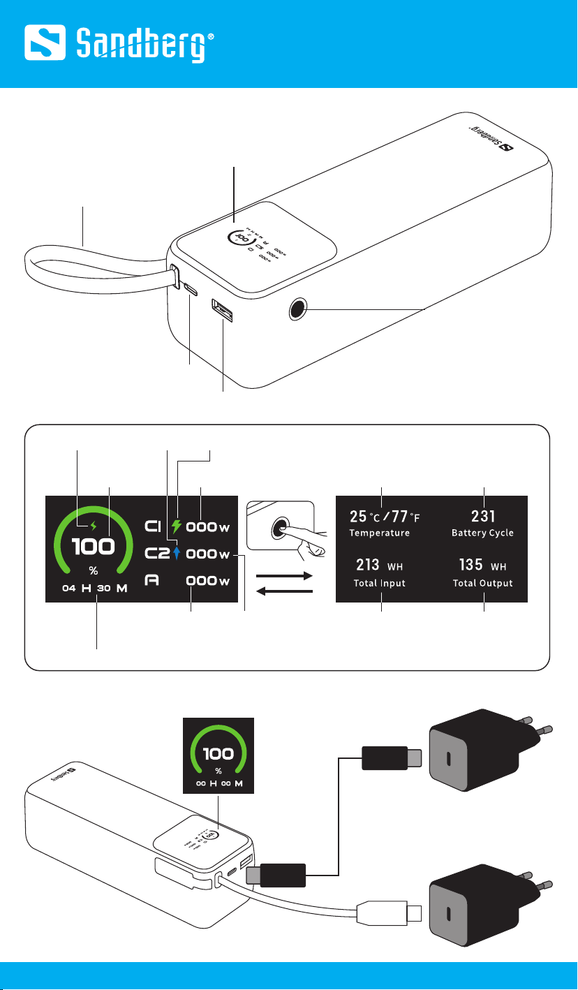 Input (USB-C port): 5V/3A, 9V/3A, 12V/3A, 15V/3A, 20V/5A (100W Max)