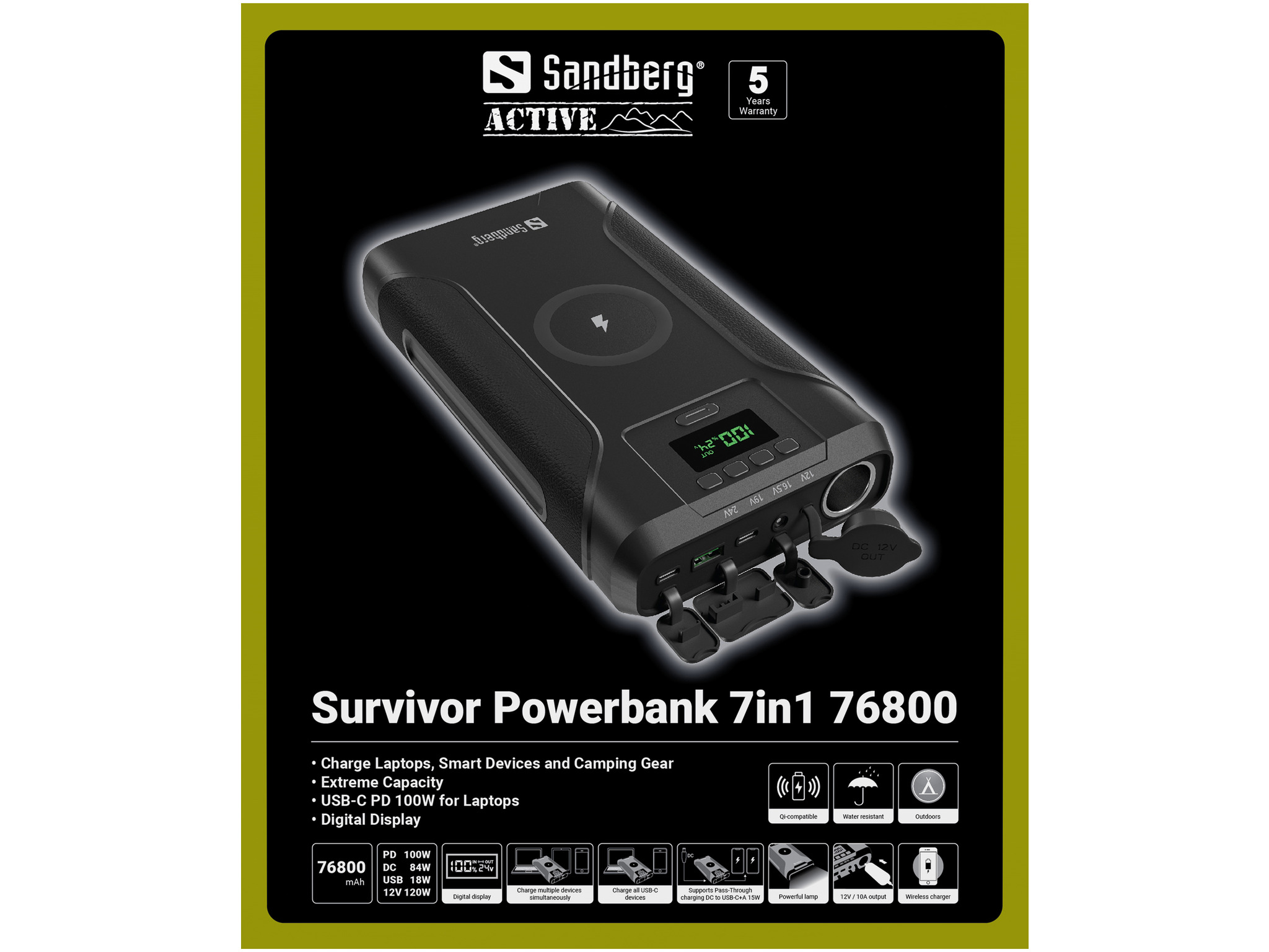 La Sandberg Survivor Powerbank 7in1 72 000 est la station de charge ultime pour pratiquement tous vos gadgets. La batterie puissante de 72 000 mAh est suffisante pour recharger votre smartphone tous les jours pendant près d'un mois. Le batterie externe est équipée de nombreux connecteurs permettant de recharger vos appareils de différentes manières :