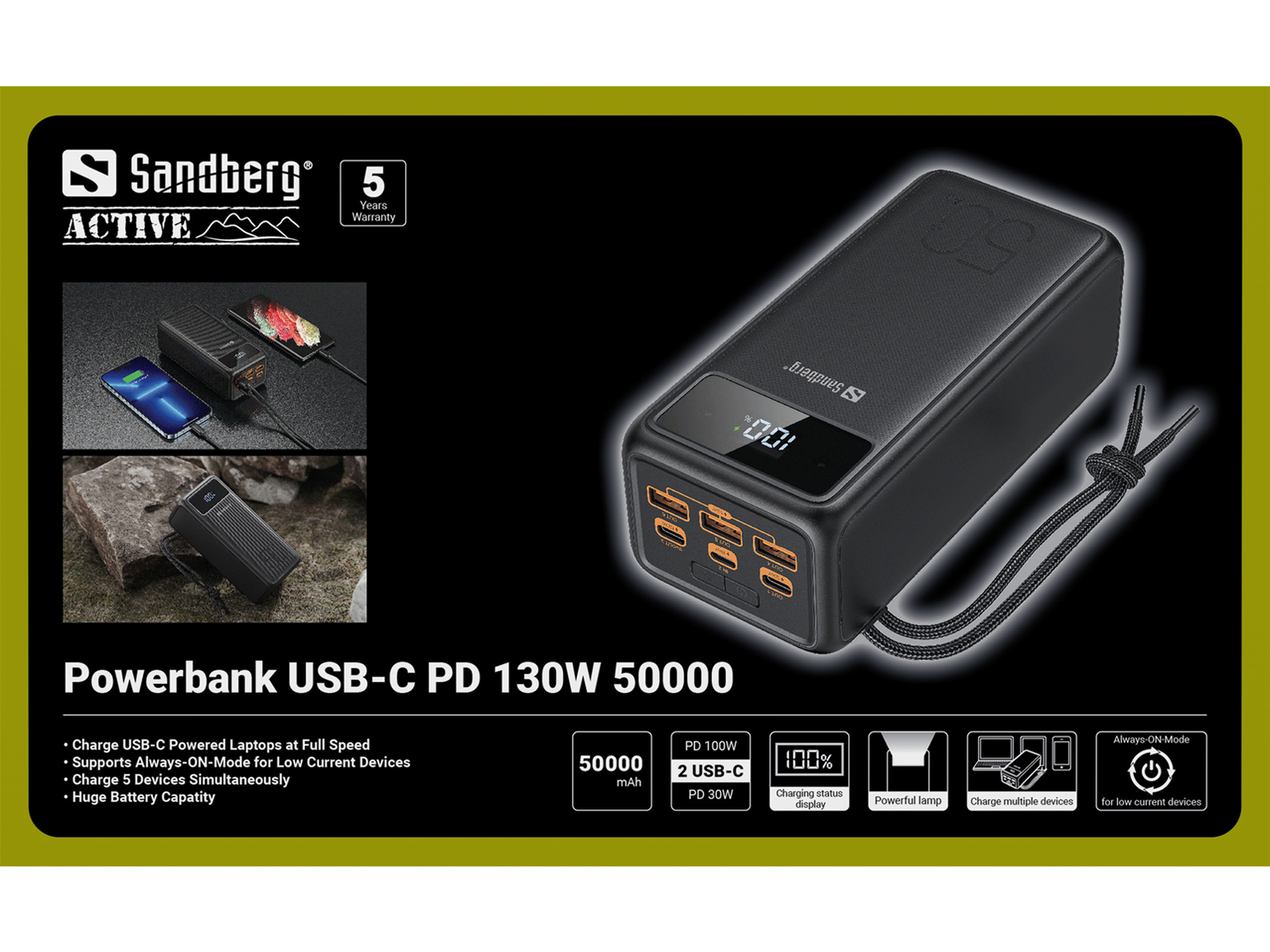A powerful powerbank featuring high speed, great performance and huge capacity. When you are away from a power outlet, this powerbank ensures optimum recharging for any mobile device. Supports standard USB-A and USB-C PD 30+100W. The latter makes it possible to charge almost any type of USB-C device at maximum speed, including laptop computers. Find your way in the dark or light up the tent with the built-in powerful lamp.